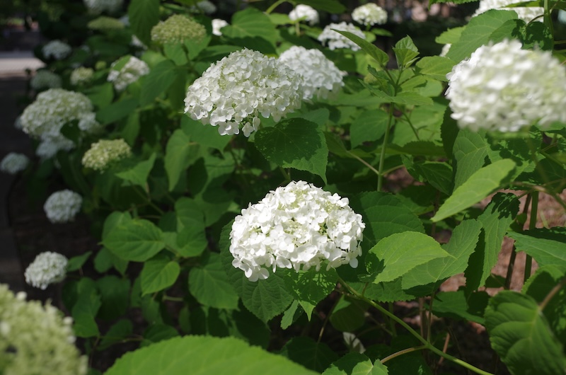 園内にあるアジサイロードは梅雨の季節にアジサイで埋め尽くされる、「アジサイスポット」です。アジサイはいくつか種類があり、園内では多種多様なアジサイがご覧いただけます。