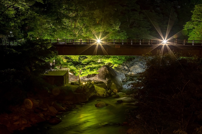 本イベントでは、山々に沈む夕陽とともにやさしく灯るライトアップにより、昼間とはまったく異なる「静けさと温もりの世界」を演出。川音や虫の声をBGMに、澄んだ空気とともに心ほどける時間をお過ごしいただけます。