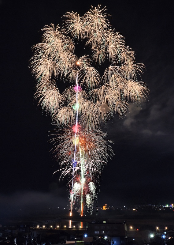 花火生産量・国内トップクラスの小千谷市の「大花火大会」は、約7,000発の花火が打ち上げられる新潟県内屈指の花火大会です。なかでも、花火大会フィナーレを飾る市民の募金で打ち上げる「超ワイドベスビアス大スターマイン」の迫力は一見の価値があります。