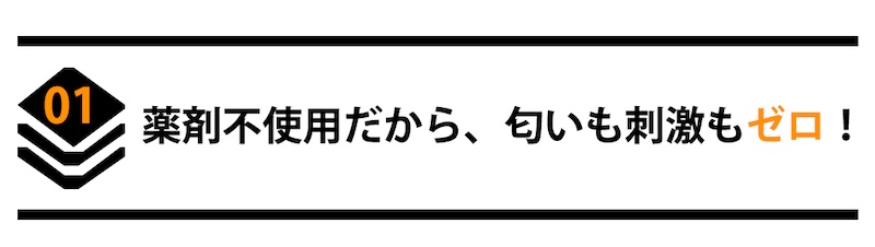 ② 薬剤不使用だから、匂いも刺激もゼロ!高齢者や子供、妊婦、ペットにも安心。