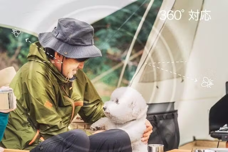 MINI REPELⅡは、360度どの方向にも音波と光を拡散できる設計。寝ているときはもちろん、ウォーキングや登山など身体を動かすアウトドアシーンでも、あなたの周囲をしっかりガードします。動いても、向きを変えても、死角のない虫対策が可能です。