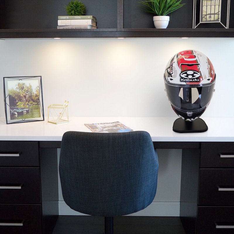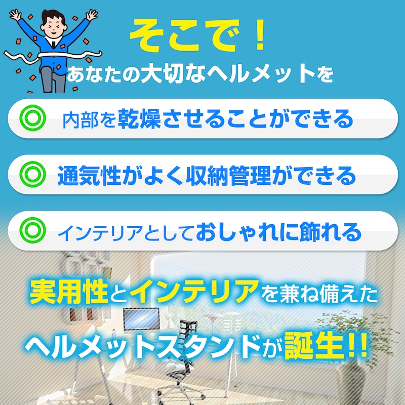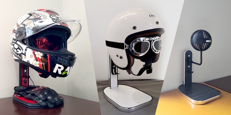 そこで、簡単に乾燥が出来て、そのままヘルメットを清潔にオシャレに展示ができる一石二鳥なスタンドがあれば良いのでは…!?