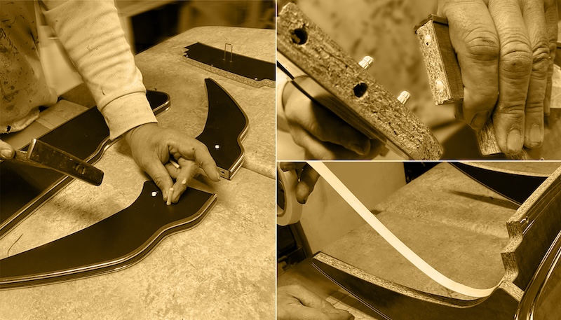 木製パネルを用いたカー用品の製作実績が豊富な老舗工場の熟練職人が一点ずつ丁寧に製作しています。(上記写真はカー用木製パネル製品を製作の様子です)