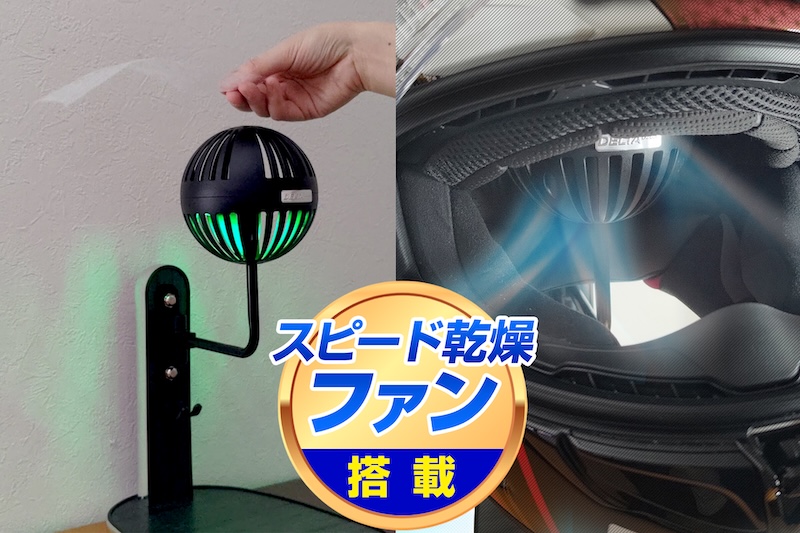 ヘルメットを置くボールハンガー部分に乾燥ファンを搭載。