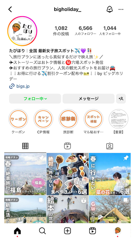「たびほり」では全国最新女子旅スポットをお届けしています。旅行プランに迷ったら真似するだけで映え旅の出来上がり!期間限定でビッグホリデーツアー割引クーポンも配布中!皆さまからのフォローお待ちしております。