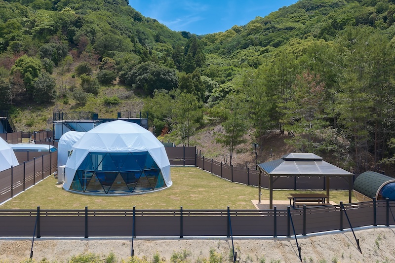 関西屈指のリゾートエリア、瀬戸内海に誕生する全7棟のグランピング施設「淡路サウナグランピングMeri-メリ-」。