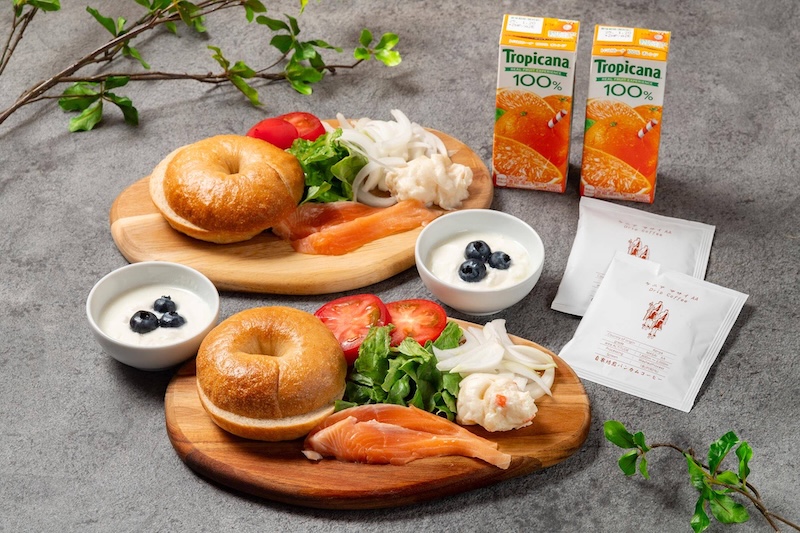 | 絹姫サーモンのベーグルサンド・地元ベーグル専門店のふんわりベーグル・愛知県のブランド魚 絹姫サーモン | 新鮮野菜のサラダ・フレッシュ野菜・ポテトサラダ・ドレッシング (イタリアン,レモンorフレンチ) |