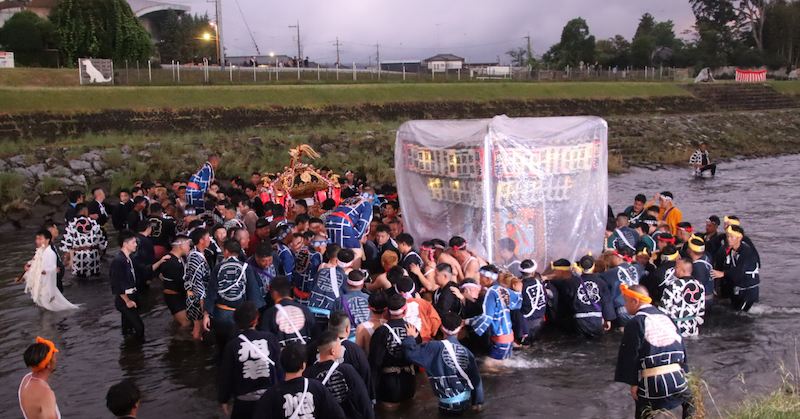 初日の7月25日(金)は、夏まつりの出陣式にあたる「出御祭(しゅつぎょさい)・宮出し」が大前神社で行われ、神輿渡御や屋台巡行の安全、五穀豊穣、疫病退散、産業発展を祈願し、その後、神輿が各町会を巡る「町会渡し」が行われます。
