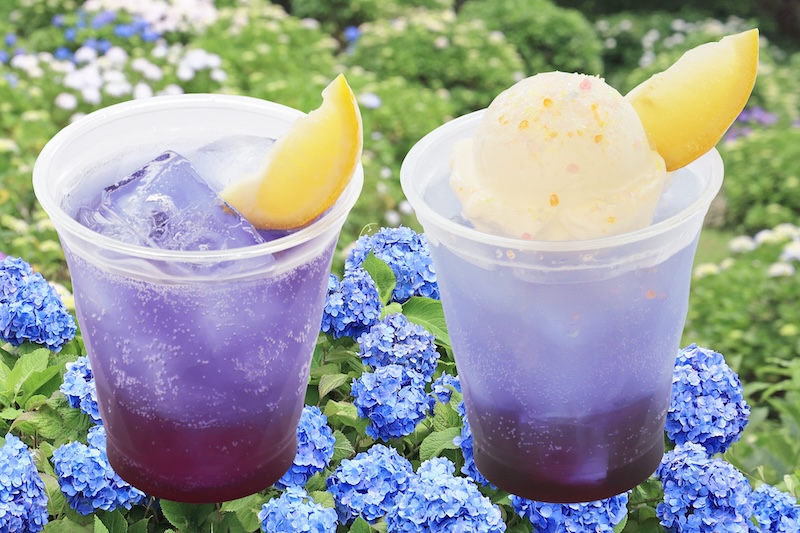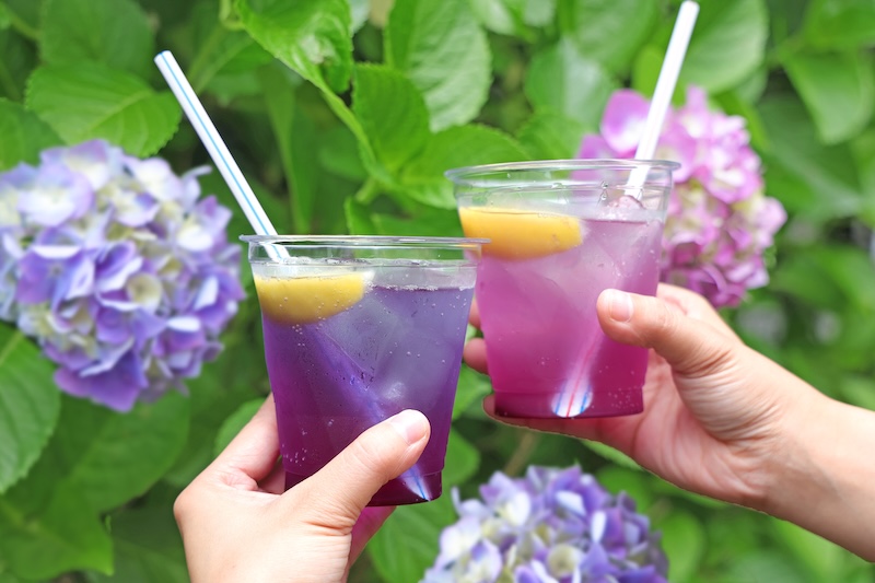 バタフライピーティーソーダの爽やかな味わいは、あじさい鑑賞のおともにオススメの一品です。