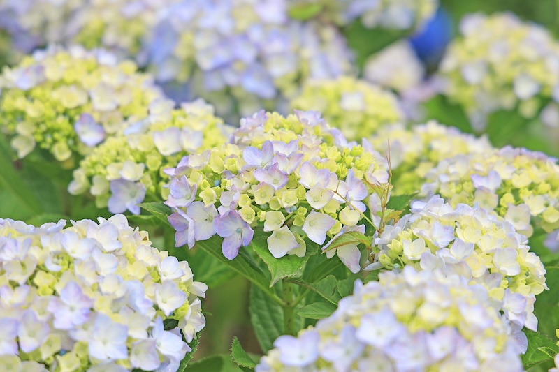場内では、「セイヨウアジサイ」をはじめ「ガクアジサイ」「柏葉アジサイ」「アナベル」など様々な品種があり、個性豊かな花々を咲かせています。