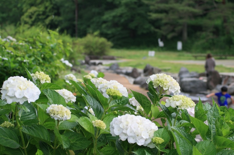 国営武蔵丘陵森林公園の「彫刻広場」「渓流広場」でアジサイが見頃を迎えています。