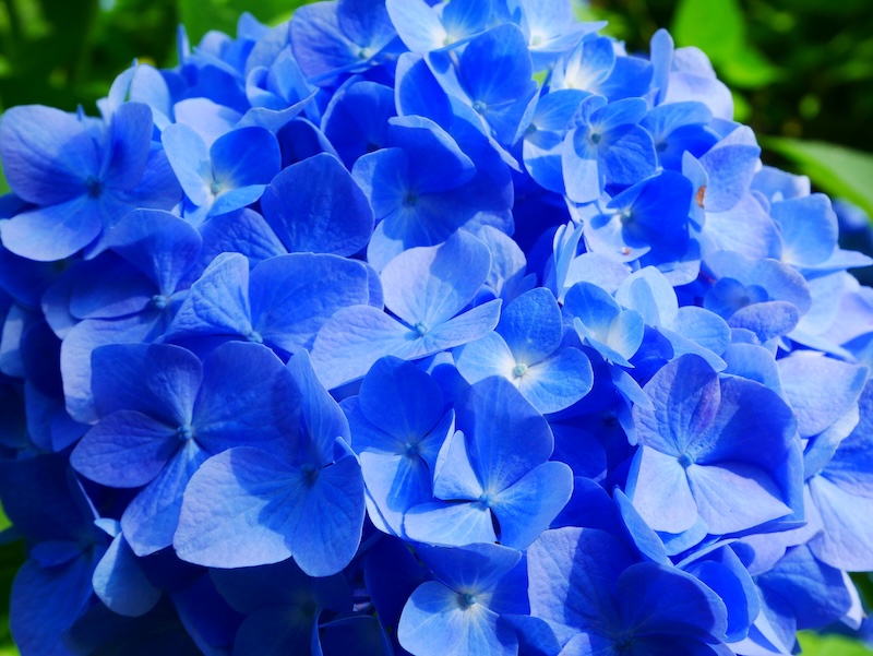 漢字の「紫陽花」は、小さな藍色の花が集まって咲くことから「藍色が集まったもの」を意味する「集真藍(あづさい)」がなまったものという一説があります。また、四枚のがく(花 びらに見える部分)を持つことから「四葩(よひら)」、土壌の性質により花の色が変化することから「七変化(しちへんげ)」の別名を持っています。