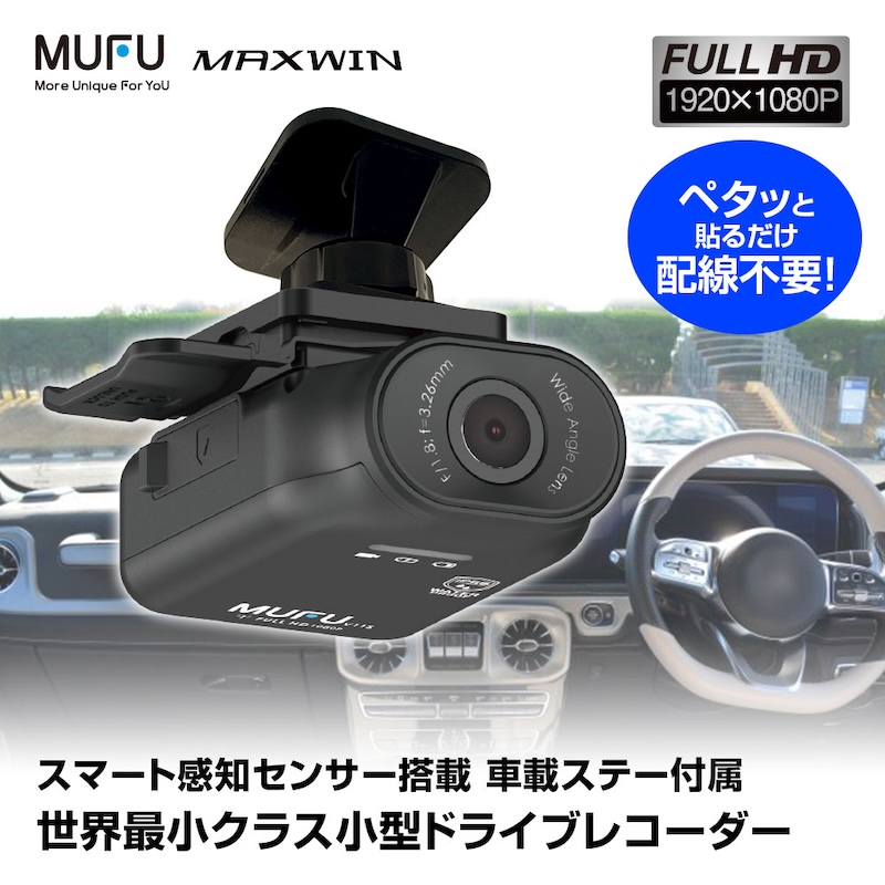 車載に便利な取付けステー付属!バッテリー内蔵で配線不要な簡単ドラレコ