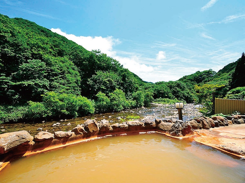 明治時代から続く歴史があり、自然に抱かれた静かな湯治宿。渓流のすぐそばにある露天風呂では、山の緑に包まれながら源泉100%かけ流しの湯を堪能できます。鉄分や天然保湿因子のメタケイ酸の含有量が豊富な泉質で、湯上り後は肌がしっとりするといわれています。大自然の中で心身ともにリフレッシュできる、まさに隠れた名湯です。