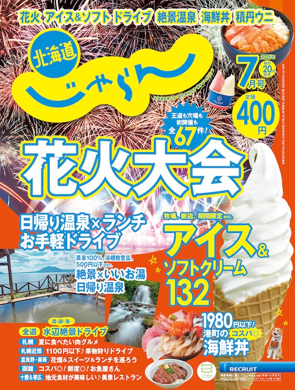 日帰り温泉&ランチお手軽ドライブ、全道花火大会67連発、全道132店!ソフトクリーム&アイス大特集、ALL1,980円以下!港町のコスパ◎豪華海鮮丼、いいお湯×絶景日帰り温泉、滝・湖・海…水辺絶景×地元グルメ×温泉ドライブ…など今月も旬の情報が満載です。ぜひご覧ください。