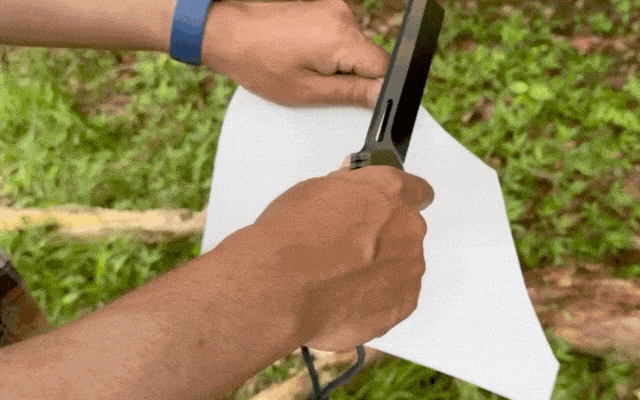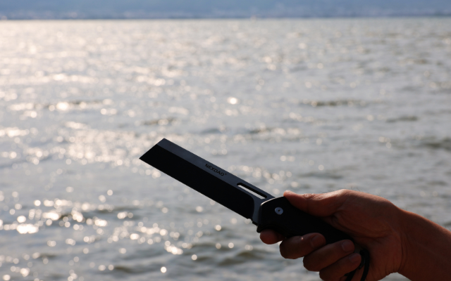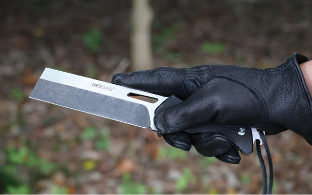 必要十分な長さ14cm、厚さ5mmに加えて、ハンドルのテール部分までブレードが伸びるフルタング構造は、バトニングはもちろん、枝や竹を叩き折るといったハードワークも難なくこなします。