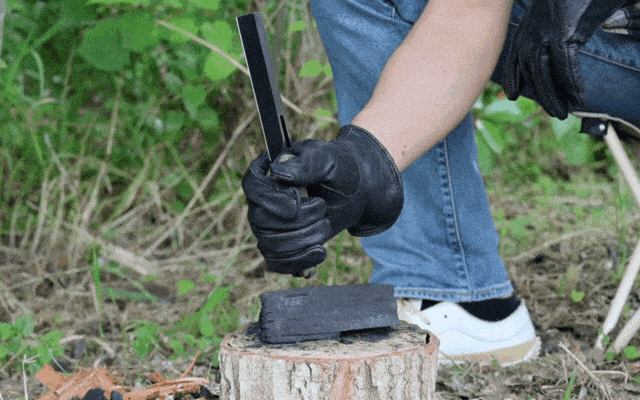 頑強なグリップエンドはハンマーとして炭や竹を割る際にも活躍。