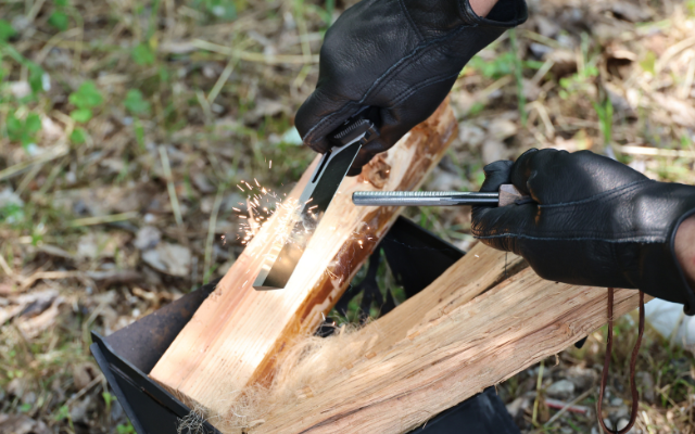 そしてエッジを立たせたスパイン(刃の背中側)はストライカーとして強力な火花を飛ばすのにも役立ちます。