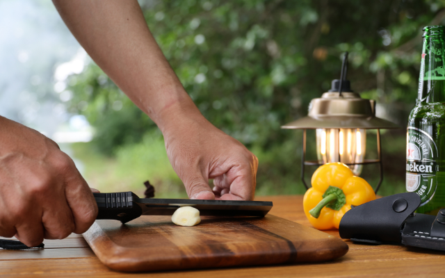 しっかりと握りやすいグリップに加えナイフの重量を活かすことで、驚くほど簡単にボトルの栓を開けることができる。