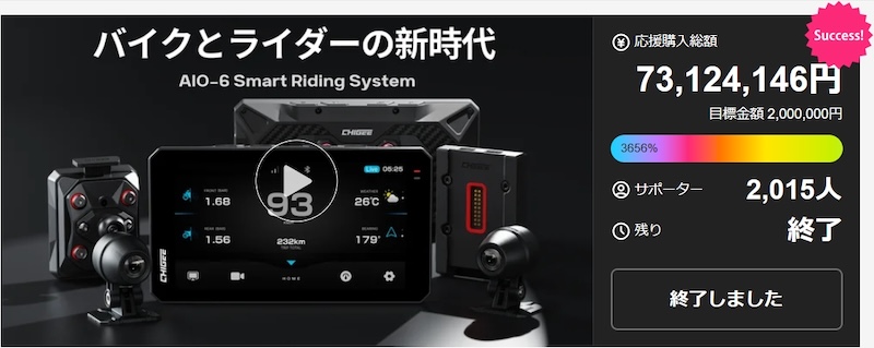 バイク用スマートライドモニター「AIO-6」がMakuakeで8,000万円の大台突破!豪華3大抽選キャンペーン同時開催中
