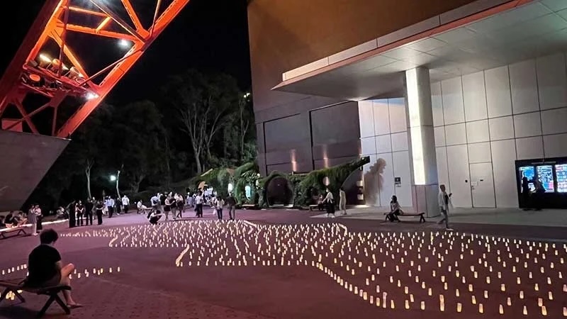 正面玄関前では、7月6日(日)・7日(月)の2日間、19時~22時まで、増上寺境内で開催される「増上寺七夕まつり・和紙キャンドルナイト2025」と連携し、LEDキャンドルの「天の川」を展示します。