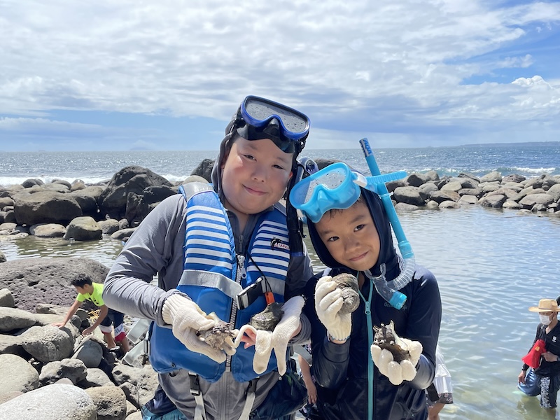 小学生までのお子様が対象で、ひとり2個までさざえを捕ることができます。