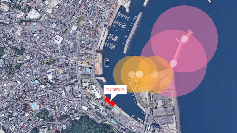 | 会場 | 打上げ場所「熱海湾」(熱海港7.5m岸壁~海釣り施設) |