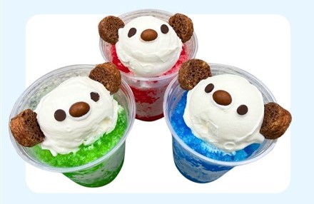 かわいらしい「くま君」をイメージして作った当園オリジナルかき氷。メロン・いちご・ブルーハワイの3種類の味をご用意しました。