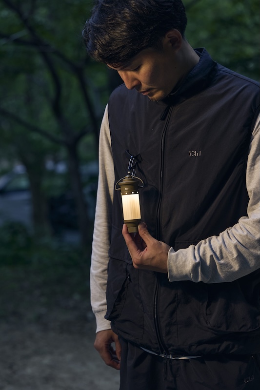 本製品は、手のひらサイズのコンパクト設計ながら、「吊る」「置く」「持ち歩く」といった使い方ができる、ミニマルなLEDランタンです。最大240lmの明るさに加え、無段階調光でシーンに合わせた光の調整が可能。シェードには独自のウェーブ形状を採用し、眩しさを抑えたやわらかな灯りを実現します。