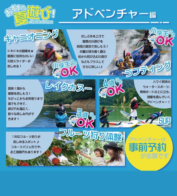 近隣の利根川やダム湖で楽しめるウォーターアクティビティは家族の冒険にぴったりのアドベンチャー。