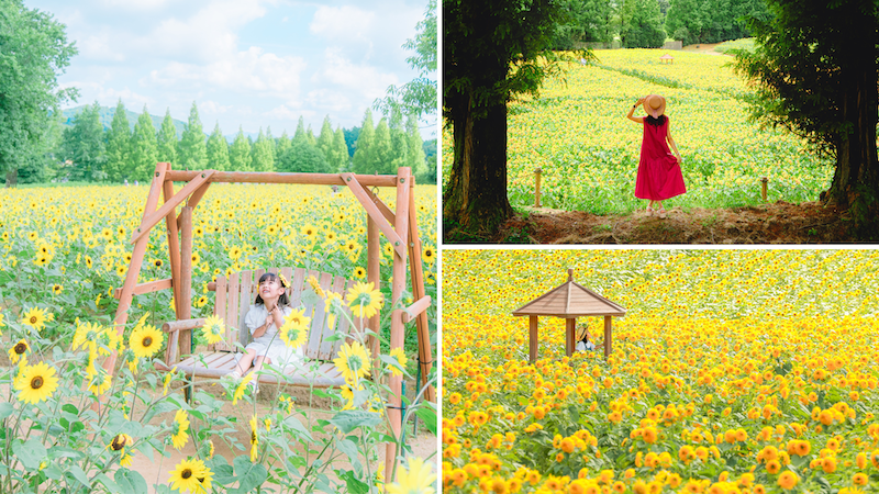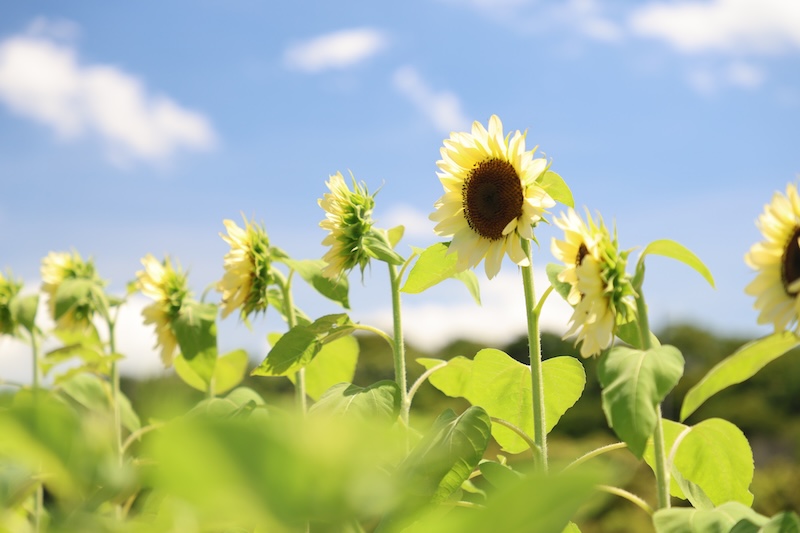 世羅高原農場の夏は、黄金のひまわり畑が大海原のように広がります。65,000㎡もの広大な畑には、王道のひまわりから珍しいひまわりまで様々な品種が咲きます。どこを見てもワクワクするような楽しいひまわり畑にご期待ください。