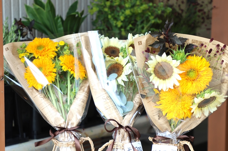 専属フローリストが作るひまわりのブーケを販売します。ひまわりは本数によって花言葉が変わります。贈る相手をイメージして選ぶのもおすすめです。