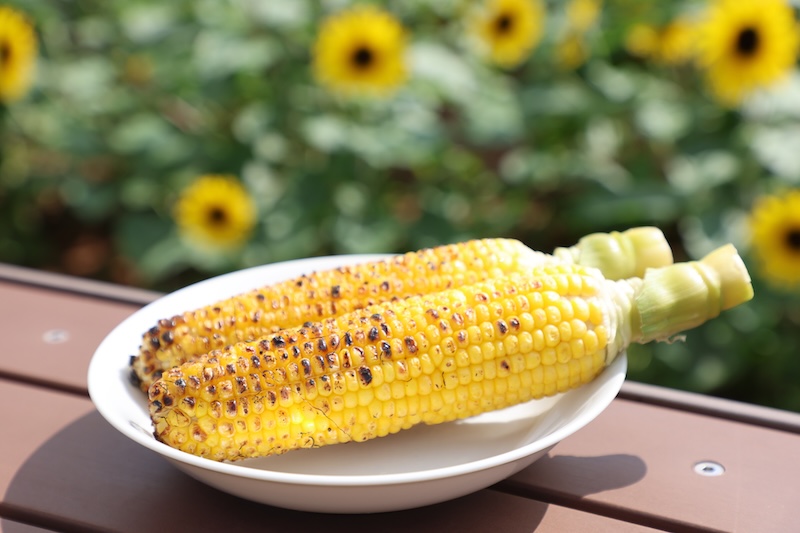 甘さが自慢の「農場産とうもろこし」を醤油ダレで甘じょっぱく焼き上げます。