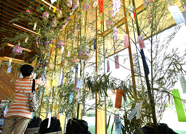 内容:高さ約3.5メートルの笹竹の七夕飾り7本を展示。先着1000名に短冊を無料配布していて、願いを書いた後自由に飾ることができます。