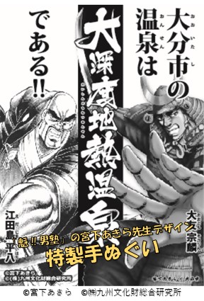 さらに、16か所全てのスタンプをコンプリートした方には、先着100名限定で「魁‼男塾」の宮下あきら先生デザインの特製手ぬぐいをプレゼント!