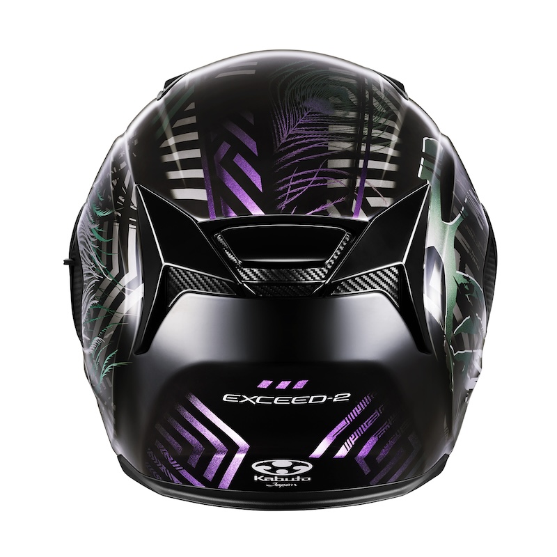 今回追加する「PLUME」は、見る角度によって色彩が変化するスペシャルカラーに孔雀をモチーフとした神秘的なグラフィックを融合。繊細で優美な羽根の表現と深みのある色合いがライダーを引き立たせます。神秘性と気品を併せ持つその佇まいが「EXCEED-2」の洗練されたフォルムと調和し、唯一無二の存在感を放つモデルに仕上がっています。