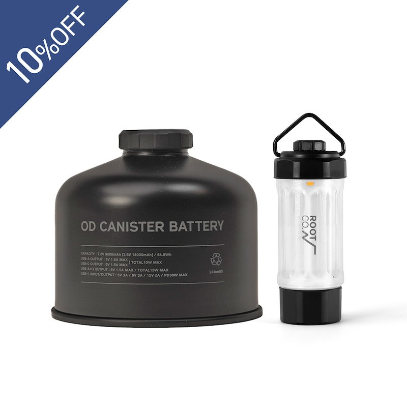 併せて、「OD CANISTER BATTERY」と「PLAY LED MINI LANTERN OCTA.」の期間限定10%OFFセットも同時販売いたします。