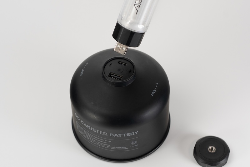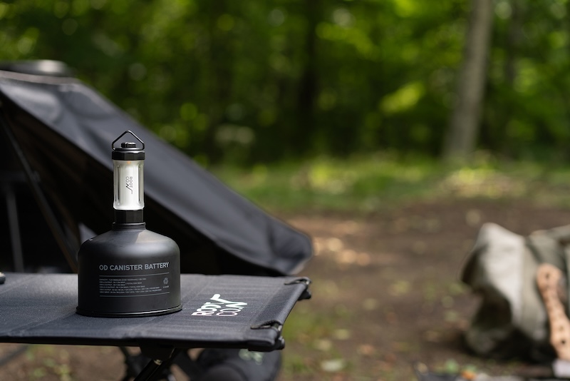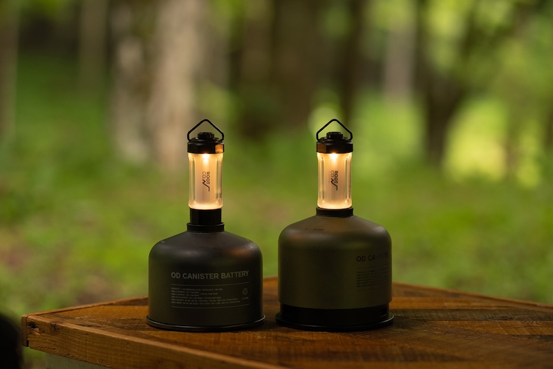 本体にバッテリーを内蔵しているためランタン単体でも使用可能ですが、「OD CANISTER BATTERY」(別売)と組み合わせることでより実用的に。