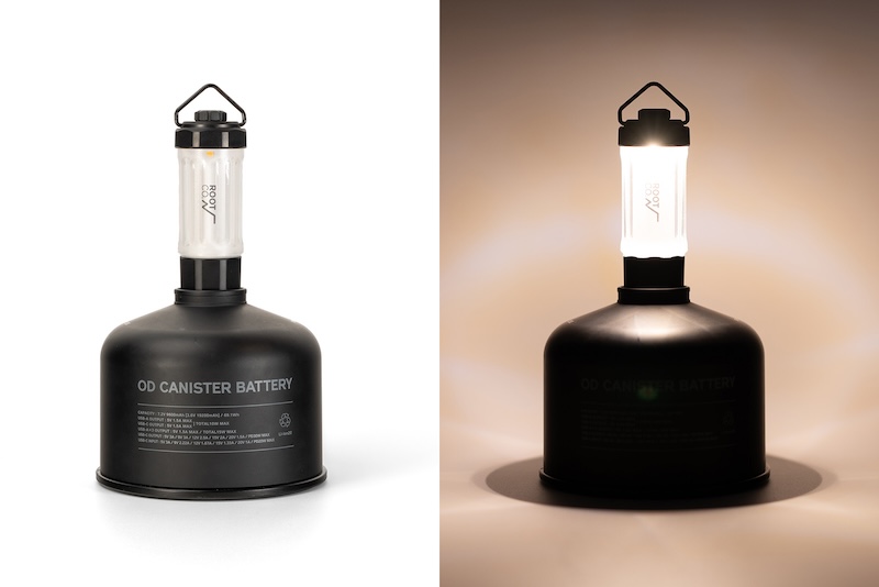 “給電”と”スタンド機能”を一体化したスマートな使用が可能になる、「OD CANISTER BATTERY」のためのランタンです。