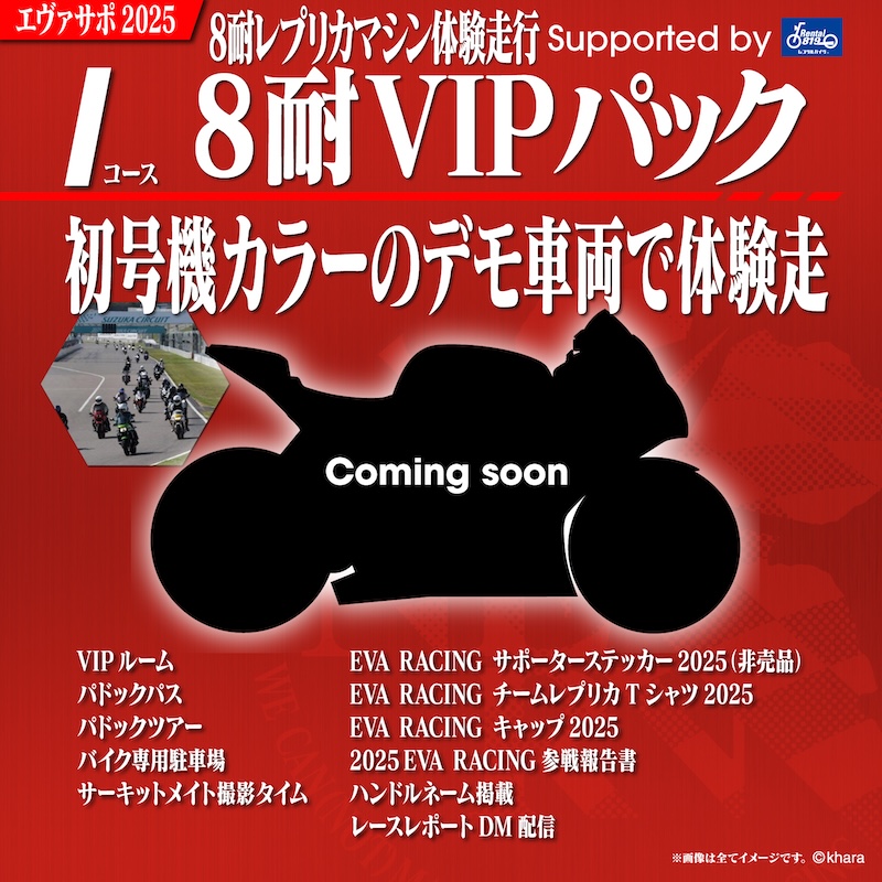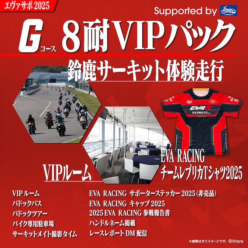 これに伴い、2025年8月に鈴鹿サーキットで開催される国内最高峰のバイクレース「FIM世界耐久選手権 “コカ・コーラ” 鈴鹿8時間耐久ロードレース(通称:鈴鹿8耐)」にて、エヴァレーシングの世界観とレースの熱狂を“リアルに体感”できる【特別体験プラン】を数量限定でご用意いたしました。
