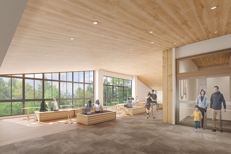 内装には山頂エリアのリニューアルで伐採した多種多様な木材を、インテリアには県産材を活用した家具を導入し、まるで森の中にいるような雰囲気を感じられる落ち着いたカフェを新設します。