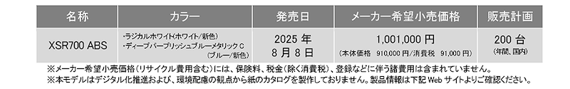 XSR700製品サイト: https://www.yamaha-motor.co.jp/mc/lineup/xsr700/