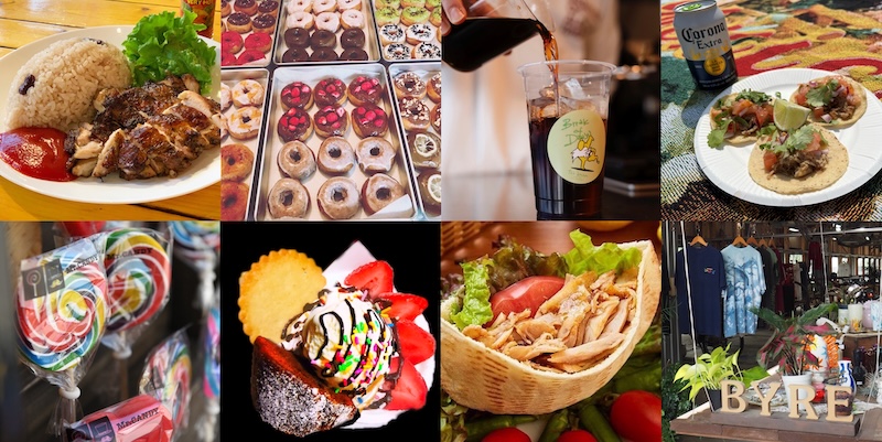 グッドウッドテラス、HUGSY DOUGHNUT、tak beans、メヒカリ、As kebab、Mr Candy、ミルキーフラミンゴクレープ、BYRE