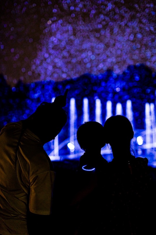 夜空を彩る天の川のようでもあり、海中から見上げる水面のようでもあり、見た人によってさまざまな感じ方を提供します。自然と共創する幻想的な光の演出をお楽しみいただけます。