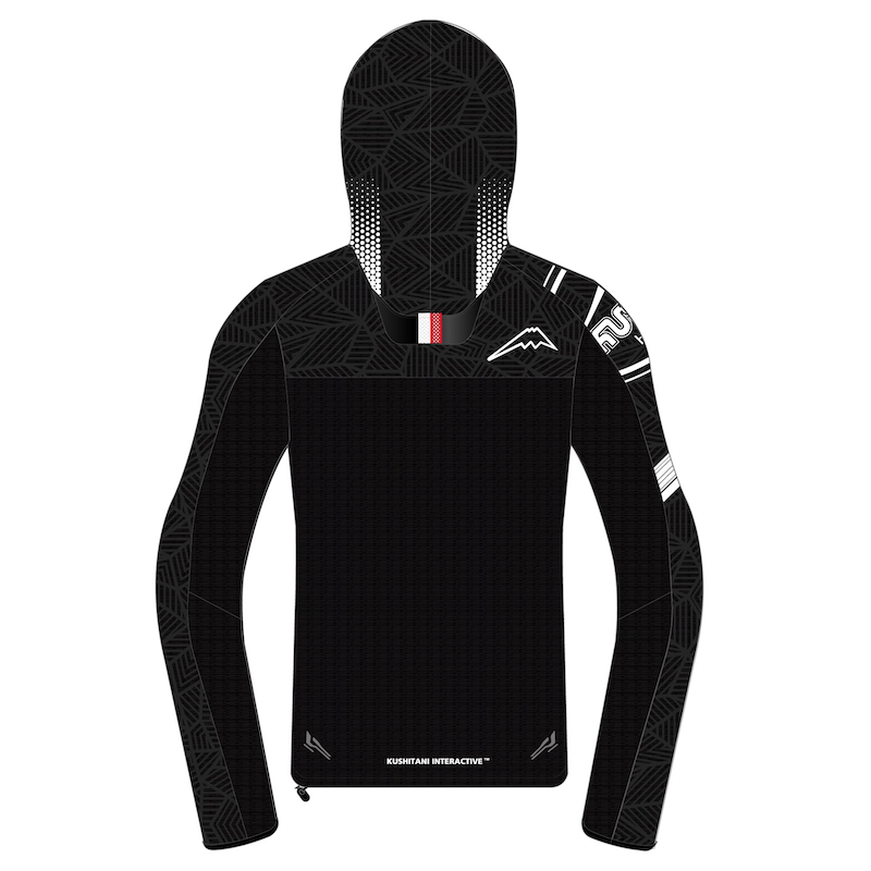 受注生産モデル「KUSHITANI LIMITED EDITION」の今シーズン第一弾は、ミッドパーカー(P-1368INTE)です。ミッドパーカーは着心地の良いコットンライクなストレッチ3層生地素材を採用した定番人気の防寒レイヤーです。今回の限定モデルは、ワントーンカラーを基調としたスマートなスタイルに、ポイントとして大胆なグラフィックをあしらいました。超立体的なカッティングを採用しているので運動性に優れ、デイリーウェアとしても役立つ1枚です。