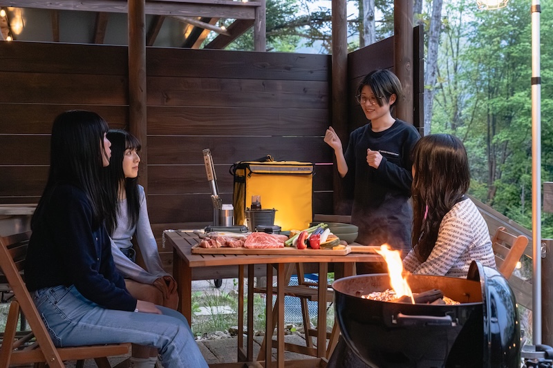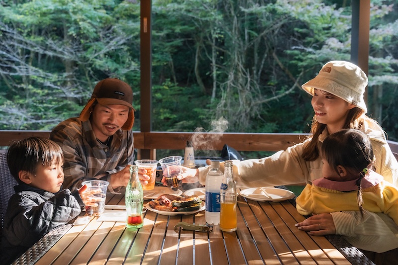 夏は川辺での水遊びや森林浴、秋は紅葉トンネルの中でのBBQなど、自然との一体感を楽しむアウトドア体験が叶います。