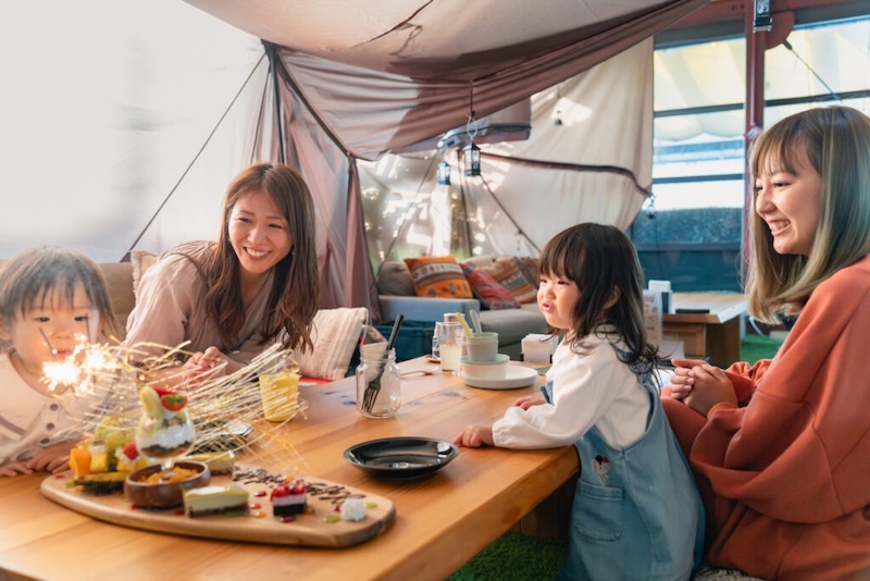 室内でありながらキャンプ気分を味わえるのが大きな魅力。