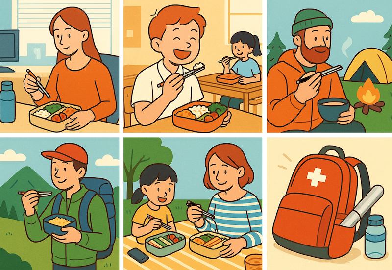 毎日のお弁当から、キャンプ、登山、ピクニックなどのアウトドアシーンや、もしもの時の防災用品としても。