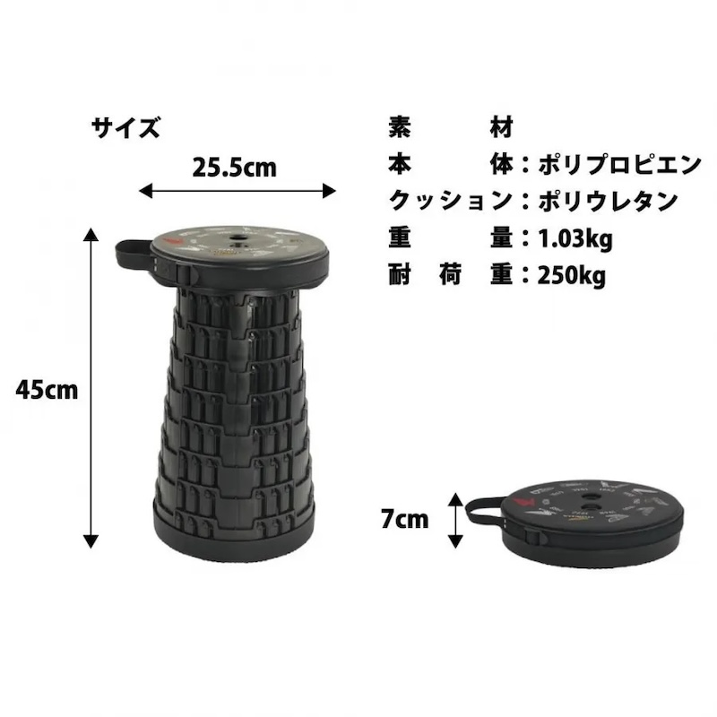 ◯クッション性があるのでお尻が痛くなりにくい – よくある折りたたみスツールと違い座面は高反発のクッションを採用。長時間座っていてもお尻が痛くなりにくい設計です。
