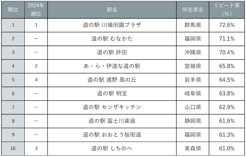 「じゃらん もう一度利用したい道の駅ランキング2025」